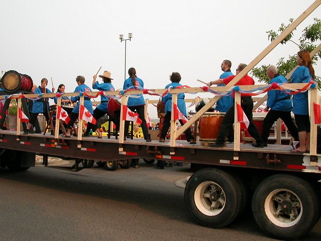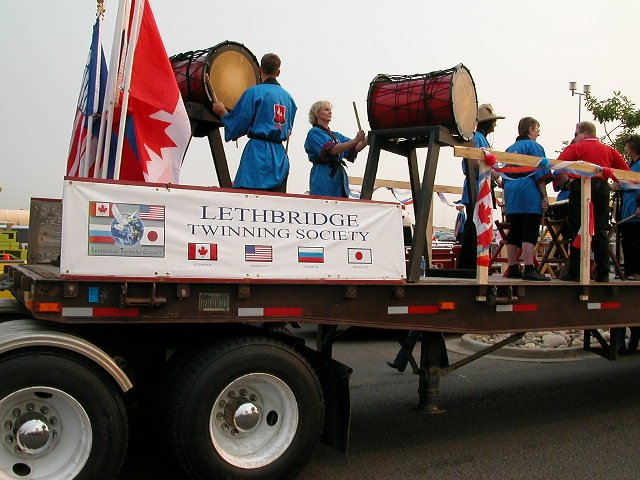 On August 22, 2006 the Lethbridge Twinning Society participated in the annual, Lethbridge - Whoop Up Days Parade. This year our participation consisted of a float carrying a number of our "Kaze No Rhythm" Japanese style drumming members. The float was awarded 3 prize for entertainment.