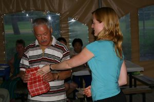 On August 19, 2006 at Annual Japanese festival "Bon Odori" Jennifer presented traditional Japanese lanterns to Rev. Izumi in Lethbridge. The lanterns were a gift from the city of Towada City City, Japan and T-AIR (Towada City Association for International Relations)