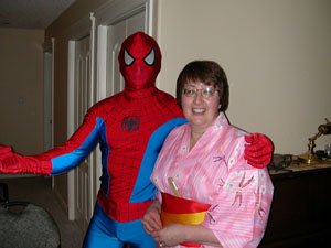 Spiderman (Tom) rescues Cheryl! Tom, Spiderman, made a appearance in Japan during a halloween party!