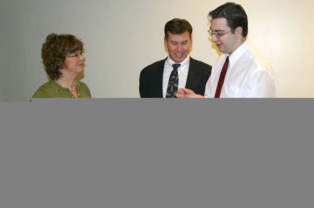 The Twinning Society recognized Glen with a inscribed silver mug.
