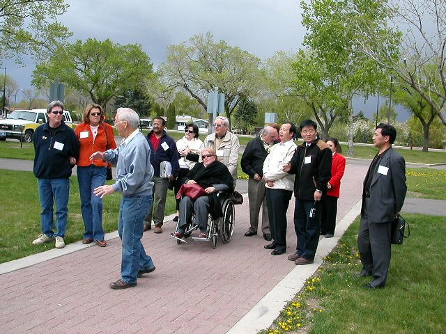 Bob commences tour of the Nikka Yuko Japanese Garden with delegates from Great Falls, Saint Laurent, and Anyang.