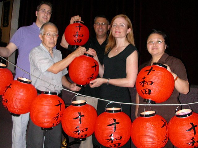The 40 lanterns were presented in time for the annual Japanese Festival where the lanterns hung proudly on display for the residents of Lethbridge to see (assisting with the presentation Kyle, Harold, and Carol).