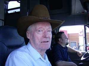 LTS Member Karl rides "shot-gun" in the rig pulling the float,