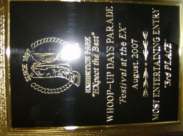 plaque proclaiming that we were awarded 3rd prize as most entertaining