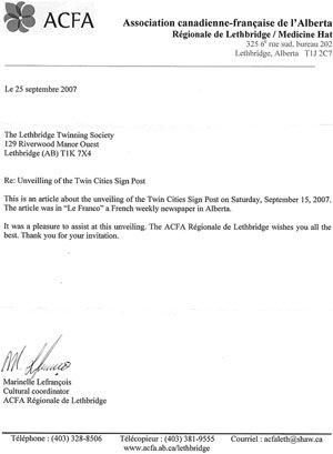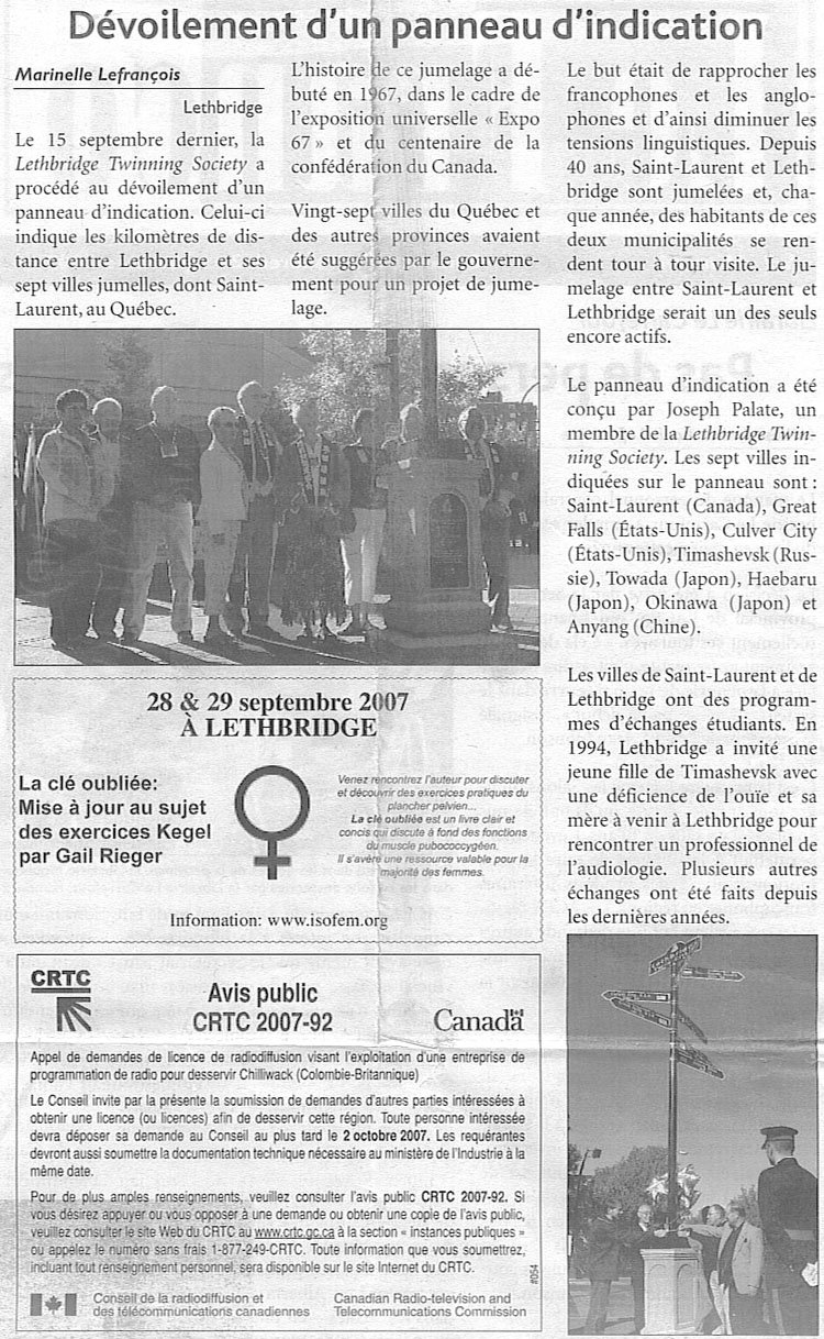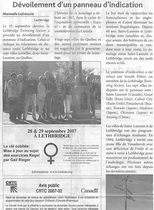 by the Lethbridge Twinning Society was held on March 29, 2007