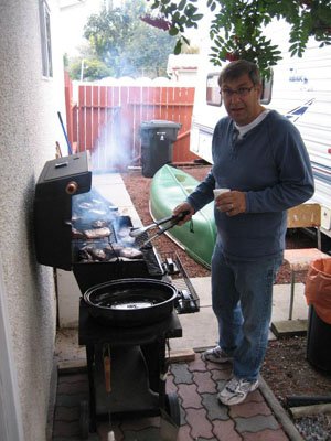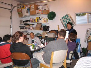 The cooler and rainy evening moved us indoors to Glen's garage (extremely