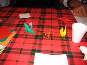 making paper cranes under the direction of Jean, Laura, Michelle and even