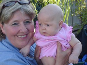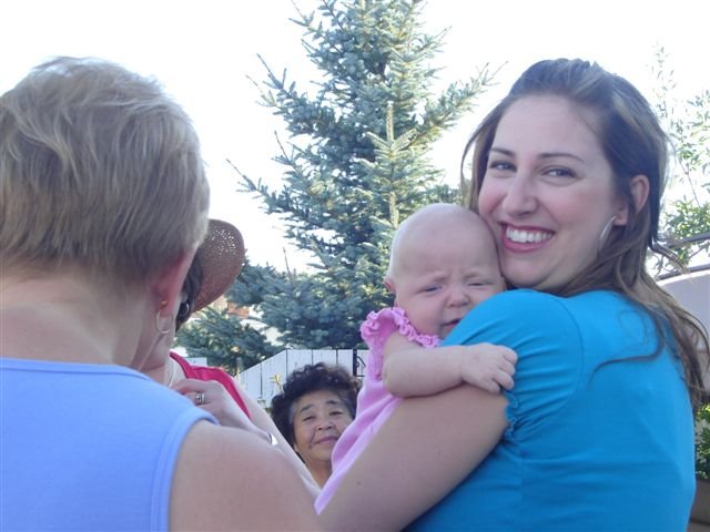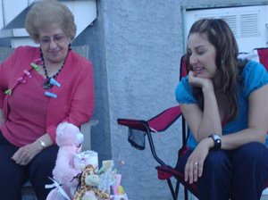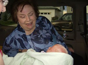 Mom, Marisa Boles, introduces Keira to Betty Reimer.