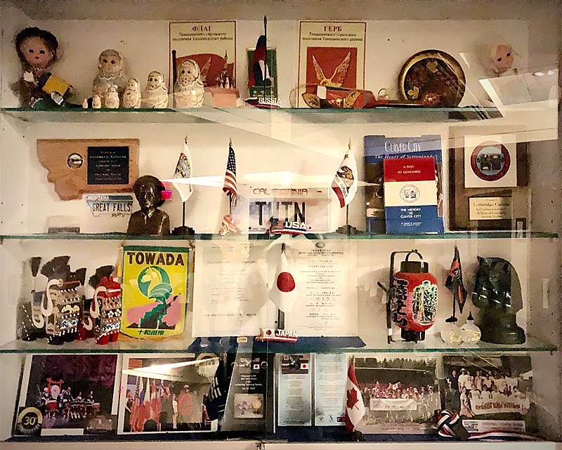 The Lethbridge Twinning Society has a display cabinet in the "Culver City Room" at our Lethbridge City Hall. The cabinet is proudly filled with memorabilia gifts received from each of our Sister/Twin cities.